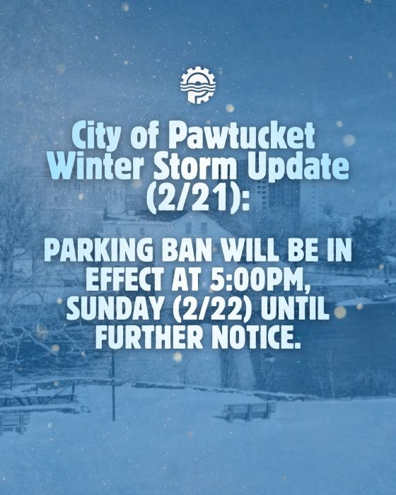 The City of Pawtucket has issued a CITYWIDE PARKING BAN beginning at 5:00 pm tomorrow, February 22nd, until further notice.